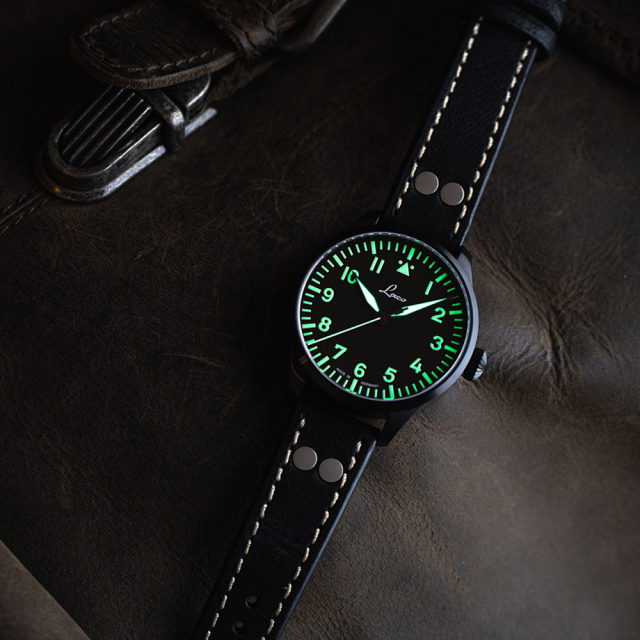 「Laco」のロゴマークをオリジナルパイロットウォッチの文字盤に配したシリーズです。1940年代のパイロットウォッチは、特化した使用目的のために製作されていたため、デザインも独特の様相を呈しています。文字盤の上下をすばやく認識できるように印字された12時位置の三角形のマークなど、パイロットウォッチの基本設計を踏襲した上で、現代の生活に違和感なく使用できるようにデザインされています。