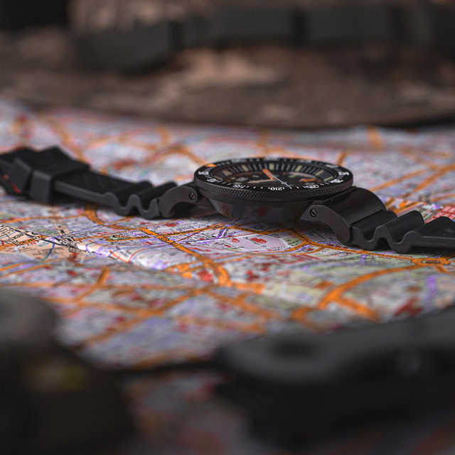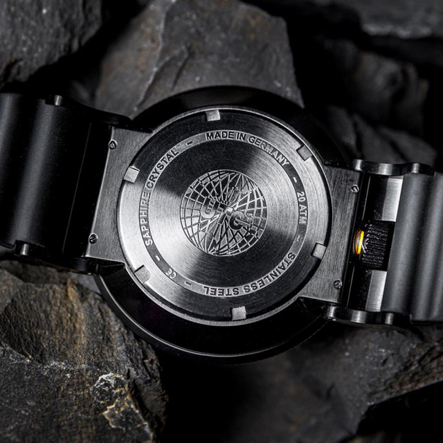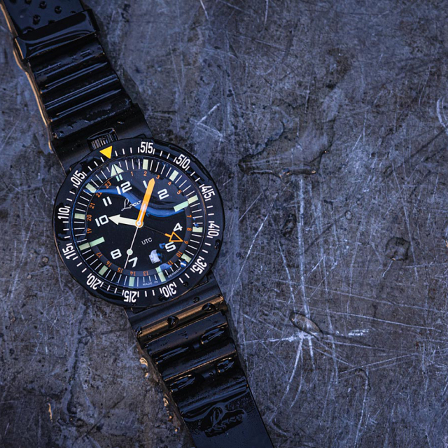 これまでの定番モデルのアタカマは機械式ムーブメントを搭載しておりましたが、異なるタイムゾーンを示すUTC針を特長としたこのモデルはスイス製のクォーツムーブメントを採用しています。針・数字・インデックスにはスーパールミノバ蓄光塗料が塗布されており、薄暗い環境や夜間でも視認性の高さを担保しています。