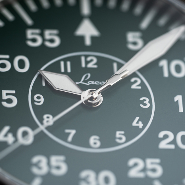 2024年の初夏にリリースされたLacoの新作は、深いグリーンとグレーのコントラストを基調とした世界限定250本生産の特別な42mm径モデルでした。2025年の秋、待望の同デザイン39mm径バージョンがリリースされました。これまでにもLacoは、定番のアウグスブルクとアーヘンのトープカラーとオリーブカラー、そして冬のホワイトカラーを基調としたポーラーシリーズをそれぞれ生産数限定モデルとしてリリースしており、今回はその第四弾となります。